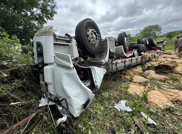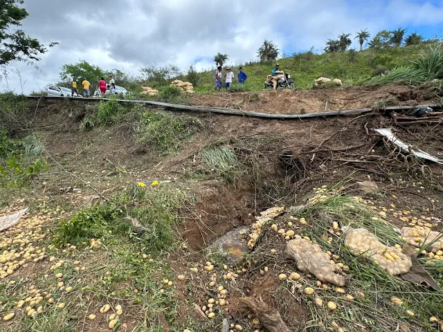 De acordo com informações publicadas pelo Blog Agmar Rios, um caminhão VW/30.330 CRC 8×2, de cor branca e placa RDF-3F16, licenciada em Juazeiro, capotou após o motorista perder o controle da direção ao contornar a curva. O veículo transportava uma carga de batatas, que saiu de Mucugê, na Chapada Diamantina, com destino ao município de Juazeiro, no norte da Bahia.