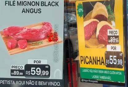 Um açougue em Goiânia foi obrigado pela Justiça a retirar um cartaz com a frase “Petista aqui não é bem-vindo”, que fixava ostensivamente na entrada do estabelecimento promocional de carnes. A nova versão adotada agora diz: “Ladrão aqui não é bem-vindo. Quem apoia ladrão também não.”